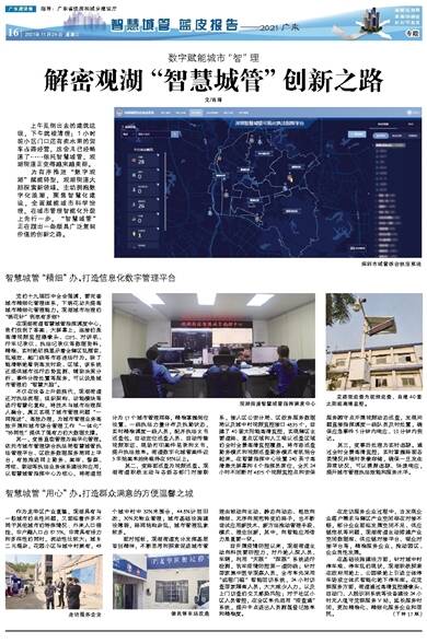 为有序推进“数字观湖”赋能转型,观湖街道大胆探索新领域、主动拥抱数字化浪潮,聚焦智慧化建设,全面赋能城市科学治理,在城市管理智能化升级上先行一步,“智慧城管”正在蹚出一条颇具广泛复制价值的创新之路。