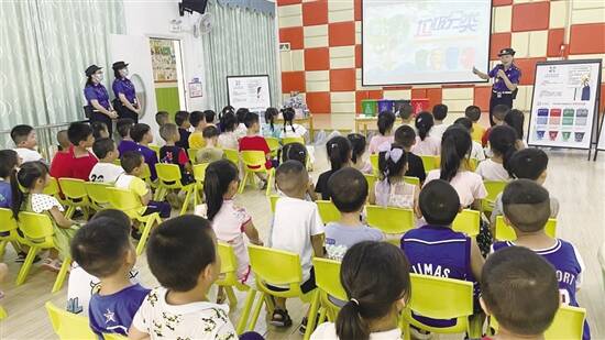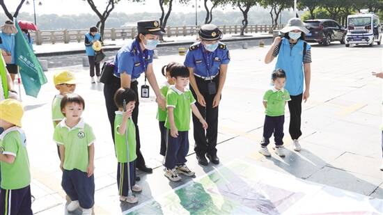 桥头中队陪同小朋友玩垃圾分类小游戏