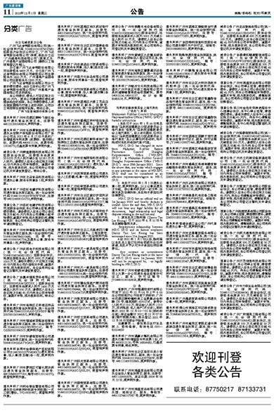 清算公告 广州紫旋广告有限公司股东会决议,本公司停止经营,清理债权债务。请债权人自本公司公告见报之日起45天内,向本公司清算组申报债权。逾期不申报,视为放弃权利。清算结束后,本公司将向公司登记主管机关申请注销登记。