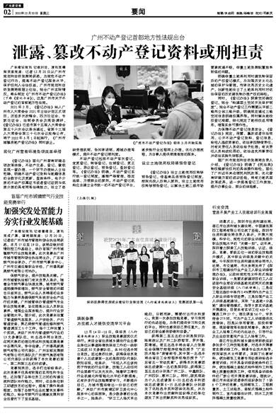 广东建设报讯 记者刘洁、通讯员穗规资宣报道:记者12月20日从广州市规划和自然资源局获悉,为规范不动产登记行为,提高不动产登记服务水平,保护权利人合法权益,广州市规划和自然资源局根据上位法,结合广州实际情况,牵头制定《广州市不动产登记办法》(下称《登记办法》),这是广州市关于不动产登记的首部地方性法规。