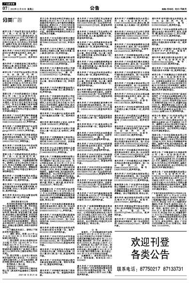 遗失声明 广州万发行基础建设有限公司遗失粤AHV796《广州市建筑废弃物运输车辆标识(IC卡)》一张,标识编号:KX027,现声明作废。