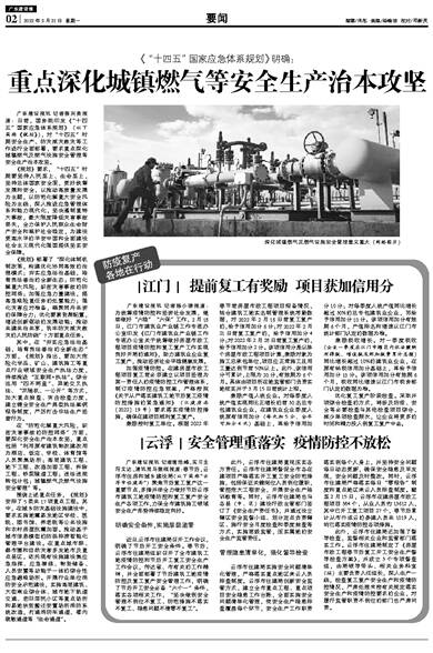 广东建设报讯 记者姜兴贵报道:日前,国务院印发《“十四五”国家应急体系规划》(以下简称《规划》),对“十四五”时期安全生产、防灾减灾救灾等工作进行全面部署,要求重点深化城镇燃气及燃气设施安全管理等安全生产治本攻坚。