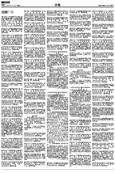 遗失声明 广东祥粤工程建设有限公司(统一社会信用代码:91440101MA9XNK5T29)遗失执照编号为S1112021028030G的营业执照正、副本,特此声明作废。