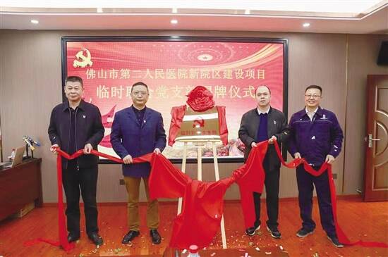 广东建设报讯 记者姜兴贵、通讯员王秀峰报道:4月20日上午,佛山市第二人民医院新院区建设项目临时联合党支部揭牌成立。据了解,该支部由佛山市代建项目管理中心、佛山市第二人民医院、中铁建设集团有限公司、广东工程建设监理有限公司等四家参建单位的项目党员共同组成。
