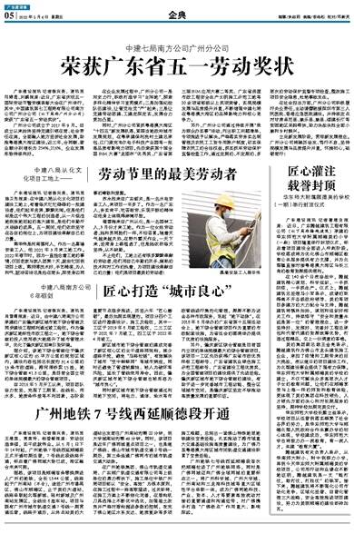 广东建设报讯 记者姜兴贵,通讯员王建国、贾美玲、杨登献报道:劳动创造幸福,实干成就伟业。从5月1日下午14时起,广州地铁7号线西延顺德段正式开通初期运营,7号线此段线路开通,标志着广佛同城大势已成,湾区融合未来可期。