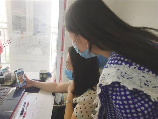 项目工作人员正与母亲视频通话