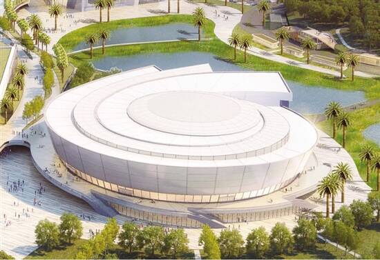 据悉,项目设计复杂多变,钢结构施工阶段,场地狭小且外侧结构影响吊装施工。经过反复论证研讨优化吊装方案,最终采用“倒退施工”的方法,充分利用内部场地空间,可完成大部分屋盖结构吊装。体育馆单体设计造型独特,钢结构节点复杂,涉及抗震球支座、铸钢件、万向关节轴承、高钒索等重要节点。