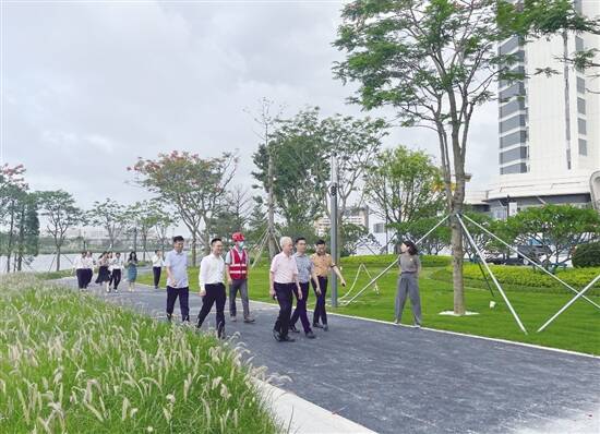 沿着蜿蜒曲折的园路,闻着空气中的凤凰花香,古润金一行来到临水挑台观赏,把河涌两岸的美景尽收眼底:河涌两岸一片片、一簇簇迎风摇曳的香蒲,郁郁葱葱的树木,姹紫嫣红的花草,碧绿的海面微荡着涟漪。古润金赞美道:“中山这里风景令人心旷神怡,将会吸引国内外众多知名企业来到翠亨新区洽商投资。中建八局不愧是建筑行业的领头羊,建造的精品工程闻名遐迩。”
