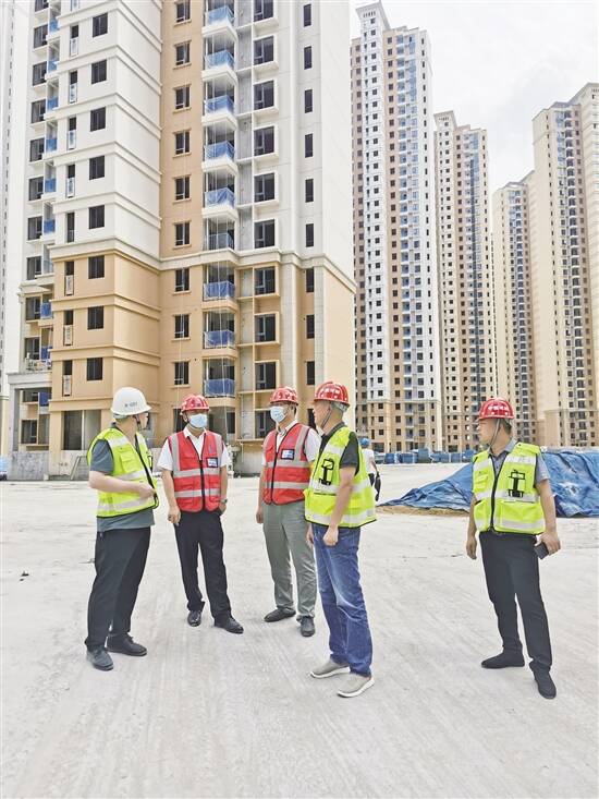 广东建设报讯 近日,中建二局二公司深圳分公司常务副总经理李洪元、副总经理王喜才及分公司工程系统检查组一行到武广新城项目检查调研。