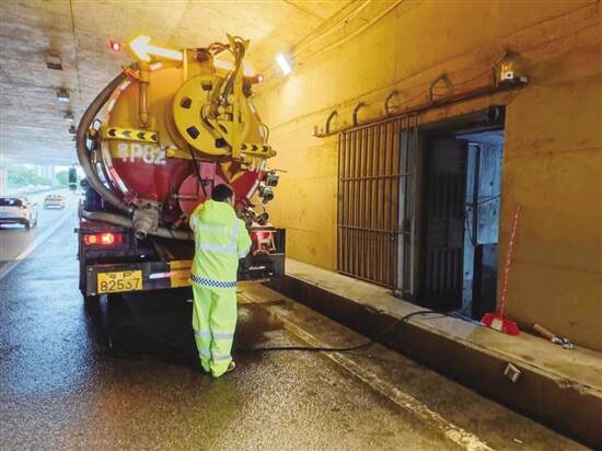 定点值班的干部职工、片区维护工人及环卫工人积极主动互相补位,除了清理漂浮在路面积水上的垃圾外,还充当起排水工,积极排除积水,一旦看到下水道沙井盖堵塞,他们就蹲下身子,冒着滂沱大雨,不顾被车辆溅起的污水,将杂物清理干净,对于工具无法疏通的,更是徒手一个个去掏,确保排水畅通,在最短时间内还原道路“颜值”。