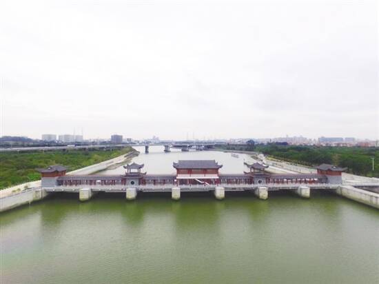 海珠区石榴岗河旧闸建于1960年,设计洪水标准为20年一遇,运行近60年,旧闸混凝土构件存在裂缝、碳化等质量缺陷,交通桥常年超负荷运行,存在严重安全隐患。针对此状,海珠区易址重建石榴岗河水闸,2018年3月主体工程完工。重建后的水闸形成了封闭的石榴岗河防洪潮体系,全流域防潮标准达到200年一遇,建成了一座治水亲水护水的综合水利枢纽。