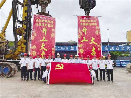 广东建设报讯 记者誉建业报道:随着巨大的旋挖钻机的轰鸣声响起,7月2日,由中铁三局集团承建的佛山环洲五路广佛高速跨线桥工程第一根桩基正式开钻施工,打响了环洲五路广佛高速跨线桥梁施工的第一声“发令枪”,标志着该项目正式进入主体工程施工阶段。