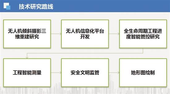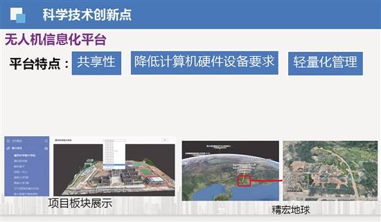 据项目负责人介绍,常规的工程项目管理存在管理效率低、管理成本高、管理效果不理想等问题,因此课题小组提出一套适用于项目全生命周期的无人机采集作业和建模流程,编制无人机作业技术指导书及管理制度。开发适用于工程项目管理的BIM4D三维实景进度管控平台,使项目实景信息具有回溯性,项目管理人员可调阅历史模型,实现项目从规划阶段到竣工阶段的全过程管控。同时,结合无人机三维实景模型和BIM,提出一种项目全生命周期的设计模型和实景模型的进度管控技术,通过叠合模型的对比,解决工程进度追溯难、进度管理成效差等问题,实现项目建设各阶段的项目进度管控,提高建设工程管理效率。