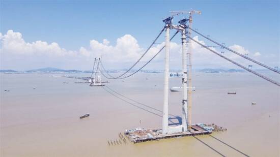 目前,深中通道伶仃洋大桥西锚碇区域钢箱梁安装施工正在按照计划稳步推进,将在今年10月底完成全部6片钢箱梁的顶推施工作业。深中通道预计2024年建成通车,建成后将成为连接珠江口东西两岸的直联通道。