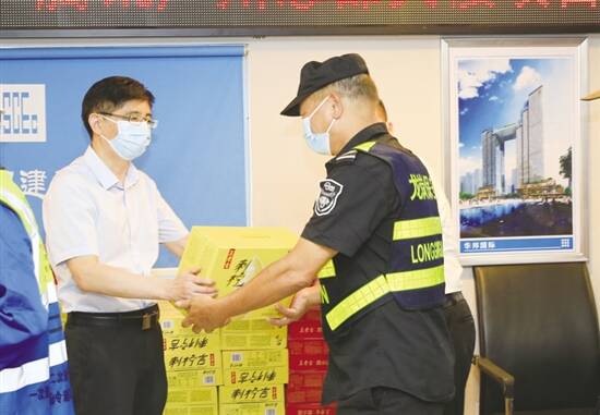 广东建设报讯 记者誉建业、通讯员左中禹报道:7月28日,广州市总工会联合海珠区总工会、海珠区住房和建设局机关工会、海珠区建设工程质量安全监督站等单位,共同前往中建二局微信广州总部大楼项目,为工友们送去凉茶、水果、藿香正气水等慰问品。