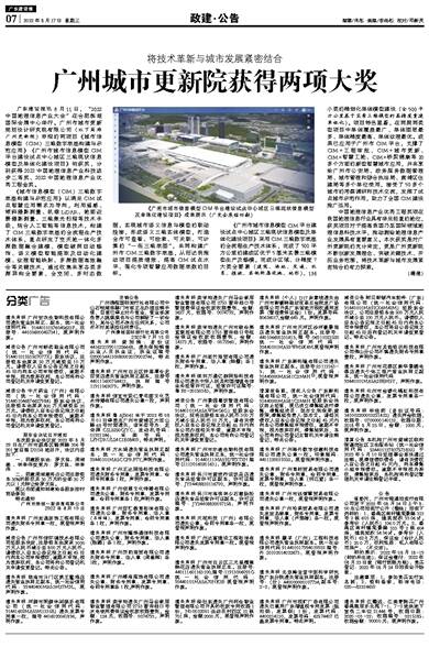 中国地理信息产业优秀工程奖项在我国地理信息行业具有举足轻重的地位,获奖项目对于提高我国乃至国际领域地理信息科技水平,推动测绘地理信息产业发展具有重要意义。本次获奖是对广州更新院的充分肯定,更是广州更新院不断创新发展理念、突破关键技术、开拓业务范围,将技术革新与城市发展紧密结合的有力探索。