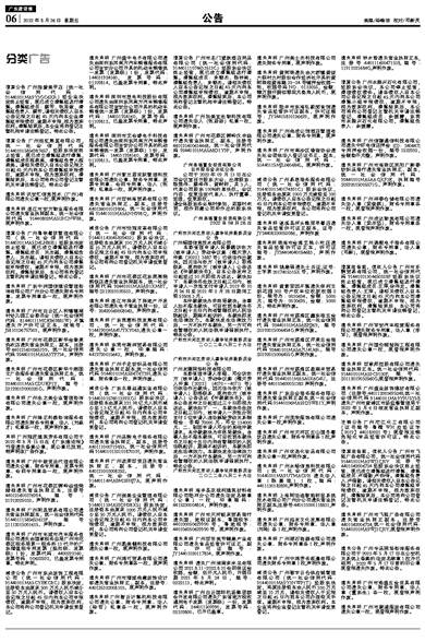 遗失声明 广州子龙纺织品有限公司遗失营业执照正副本,统一社会信用代码:91440101MA5B6T6T3H,遗失公章、财务章各一枚,声明作废。