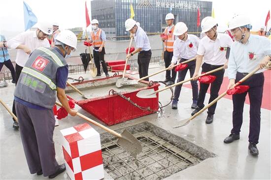 开工以来,项目团队克服了地质条件差、场地受限、疫情防控压力大等困难,研发了近海深基坑承压水综合控制等一系列国际先进技术,合理规划流水施工,有序抢工,实现了7天一层的高效主体结构工期,提前完成了主体结构封顶。