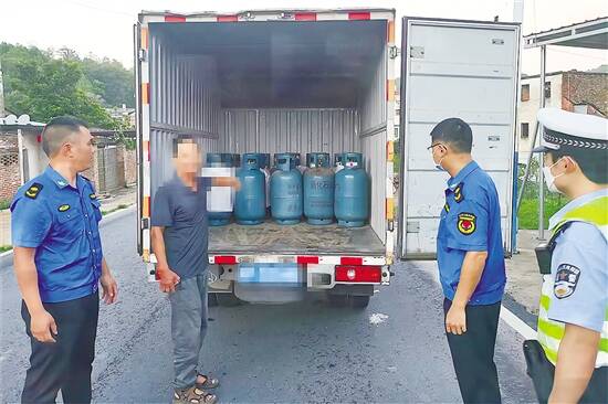 广东建设报讯 记者誉建业报道:日前,河源市和平县城市管理和综合执法局接群众举报,一辆疑似装载大量“黑气瓶”的厢式货车,从船塘经礼士方向进入和平县城。接报后,和平县城管综合执法局立即联合和平县公安局、和平县交警大队彭寨中队前往拦截。于傍晚执法人员在彭寨镇长沙村路段将该货车截停。
