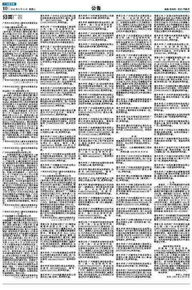 遗失声明 广州骏兰时装有限公司遗失公章,财务专用章 法人章(叶兰芳)各一枚,现登报声明作废。
