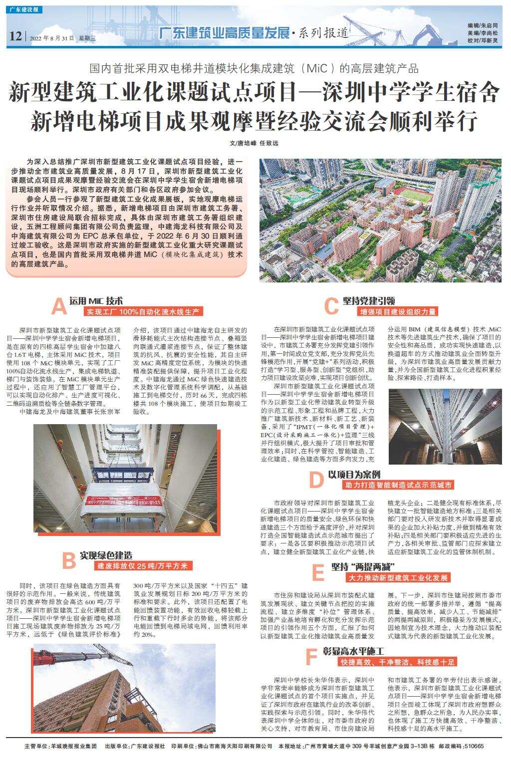 新型建筑工业化课题试点项目—深圳中学学生宿舍新增电梯项目成果观摩暨经验交流会顺利举行