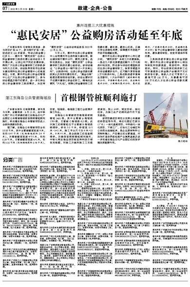 广东建设报讯 记者蒋雯菁,通讯员马文辉、金鑫报道:9月15日,由中铁七局广州公司承建的湛江东海岛石化产业园区公共管廊海域段首根钢管桩顺利施打,标志着东海岛公共管廊项目进入全线快速建设阶段。