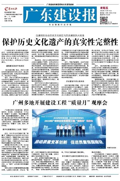 广东建设报讯 记者唐培峰,通讯员陈姝杉、郑友谊、白思敏报道:今年全国“质量月”的主题为“推动质量变革创新,促进质量强国建设”。期间,广州市多地以线上线下等形式同步开展了建筑工程示范项目观摩活动,全市各建设工程行业协会、各级住建部门还将组织各种形式的“质量月”交流、培训、研讨活动。