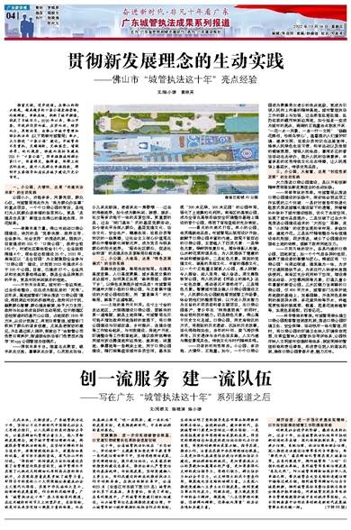 大风泱泱,大潮滂滂。广东城管执法这十年,坚持以习近平新时代中国特色社会主义思想为指引,以人民群众的美好期盼为导向,以落实精细化管理为着力点,深入贯彻新发展理念,赋予城市管理治理新内涵,构建服务管理执法新格局,在坚持不懈的开拓与追求中,有激情燃烧的奋斗,有履险如夷的欣喜,有百折不挠的尝试,有气壮山河的行进。“强转树”的持续发力让队伍建设实现了由管理型向服务型转变;城市管理水平实现了从粗放式到精细化再到高品质的渐次跃升,为实现高质量发展贡献了城管力量。即将召开的党的二十大将围绕全面建成社会主义现代化强国、实现中华民族伟大复兴,绘制新的发展蓝图,作出新的战略部署。广东“城管执法这十年”亮点经验系列报道,在这关键的时间节点上回望历史,总结经验,就是对未来坚定信心凝聚力量的体现;而在此基础上确定“创一流服务、建一流队伍”的发展目标,更是拥抱新时代、开启新征程的最好姿态。