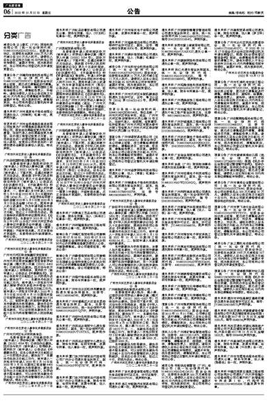 遗失声明 广州锦通电子商务科技服务有限公司遗失营业执照正、副本,统一社会信用代码914401017889022798,注册号440106000600701,声明作废。