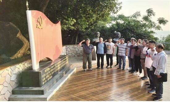 活动期间,党员们来到珠海桂山舰纪念公园,瞻仰桂山舰烈士纪念碑,在夕阳下,面对党旗,全体党员举起右手,庄严宣誓,重温入党誓词。