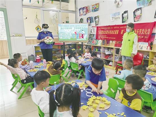 广东建设报讯 记者姜兴贵、通讯员王海豪报道:生活垃圾被认为是最具开发潜力的、永不枯竭的“城市矿藏”,是“放错地方的资源”,这既是对垃圾认识的深入和深化,也是城市发展的必然要求。为落实“环保从娃娃抓起,从身边做起”的科学环保生活理念,结合每月生活垃圾分类主题宣传日工作安排,11月14日,东莞虎门镇生活垃圾分类办联合虎门城管分局、玉兰女子中队走进幼儿园开展环保主题活动。