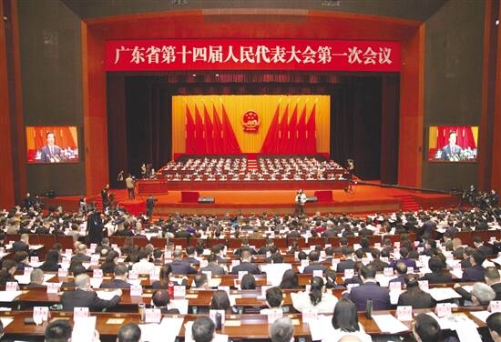 1月14日上午,省十四届人大一次会议第二次全体会议在广州白云国际会议中心世纪大会堂召开。 王辉 肖雄 石磊 万稳龙/摄