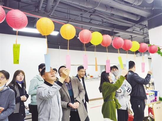 中建二局广州分公司在员工食堂举办了元宵游园会,一盏盏挂着灯谜的红色灯笼营造出浓郁的节日氛围,大家一起猜灯谜、玩套圈游戏、抽奖、吃汤圆,在喜庆祥和的氛围中度过了一个温馨、愉悦的元宵佳节。