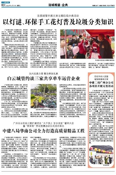 广东建设报讯 记者陈克正,通讯员乔健、马松涛报道:2月3日,中建八局华南公司(以下简称公司)举办广州白云机场三期扩建项目“大干快上 百日攻坚”誓师大会暨“铁军杯”劳动竞赛启动仪式,贯彻落实广东省和广州市两级高质量发展大会精神,全面助力广州白云机场三期扩建工程2023年冲刺百亿投资目标。