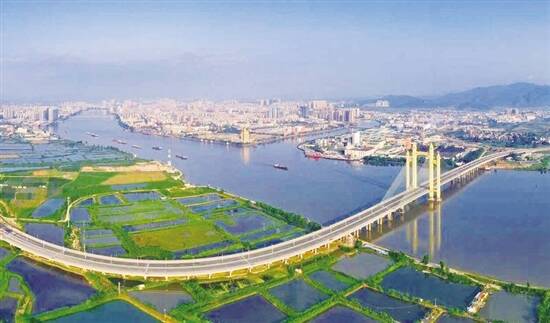 电视剧开篇,中央督导组乘车,途经金山大桥,来到“京海”,为全剧拉开了序幕。这座横跨潭江两岸的金山大桥,全长1512米, 为混凝土门型桥塔。塔身具有独特的“碉楼”设计风格,是广东省内第一宽度的超宽副斜拉桥整体式箱梁。