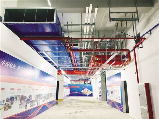 传统工程建造中,手工生产所产生的偏差或隐患依靠工厂化生产和装配式建造来解决是一种比较有效的方式。项目采用“高精砌块+薄砌薄抹”工艺减少现场湿作业,建立精装修集中加工厂、二次结构集中加工区;通过装配式机房安装技术、预制ALC墙板安装技术、轻钢龙骨隔墙施工技术、预制风管技术等工业化施工技术,使用成品消防管、成品支吊架、定制化安全防护、盘扣式脚手架等,有效提高了工程质量和施工效率,避免了现场加工导致品质降低的情况。施工现场根据BIM深化图设计编号代码进行构配件的组装,一次成型、一次成优。