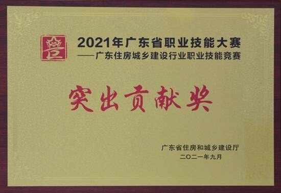 学校三次斩获广东省职业技能大赛——广东住房城乡建设行业职业技能竞赛突出贡献奖