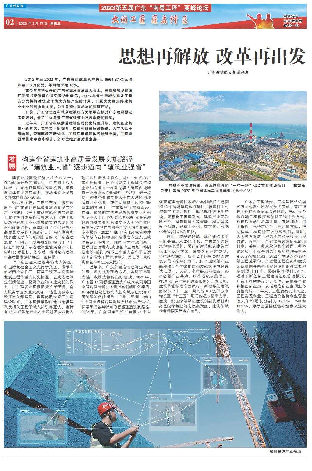 思想再解放 改革再出发 推动广东建筑业高质量发展再向前
