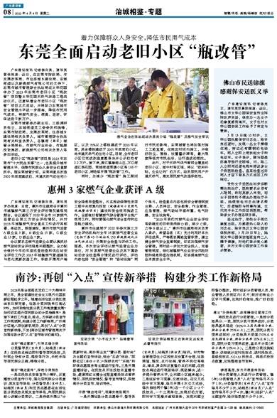 老旧小区“瓶改管”项目是2023年东莞市“十大民生实事”之一,也是提升城市管理水平、保障市民群众人身安全的重要抓手。据东莞城管介绍,东莞将重点改造2000年底前建成的、未通天然气的住宅小区,以及70%以上楼栋建成于2000年以前,其余楼栋建成于2005年底前的小区,尚未通天然气的住宅小区。目前,全市老旧小区已完成改造意愿表决并公示的约有2.2万户。接下来,黄江镇康湖山庄、万江街道江滨花园、莞城街道草塘小区等166个老旧小区,将陆续开展“瓶改管”工作。