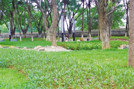 对此,花都区城市管理和综合执法局按照“见缝插绿、应绿尽绿”的原则,以高品质的微提升链接城市空间为设计目标,结合现状条件,在保留原有乔木的基础上,设置下凹式绿地、雨水花园、透水铺装等海绵体,完善周边市政管网,收集雨水,达到生态净化、涵养水源的效果。