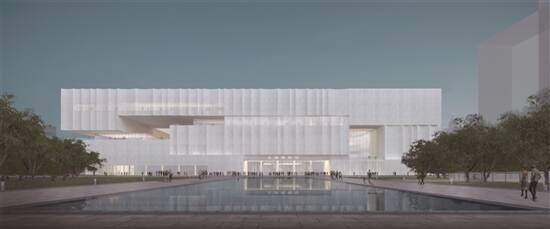 在建筑师的设想中,博物馆犹如一艘浮在空中的未来战舰,建筑中部底层的巨大挑空可供行人穿行,仿佛一扇通往未来的大门,同时也把地面还给公众,人们可在此运动、休憩。博物馆预计将于2025年建成开放。