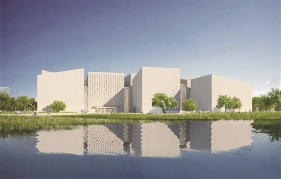 赢得了“杭州京杭大运河博物馆”竞赛,Herzog& deMeuron事务所的构思是:通过将建筑抬高12米,将地面空间归还给杭州的市民和来访者,并用面纱般的玻璃立面将解放的地面空间围合,以形成宴会厅的空间模式。在吸引大型活动的同时,也欢迎更多的市民来访。