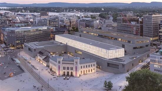 建筑被分为了上、下两部分。底部由橡木、青铜和大理石等耐用材料建造而成,并用大量灰色的挪威片岩覆盖。顶部则是一个半透明的温暖发光体,被称为“光厅”,安装了9000盏LED节能灯,像一个巨大的透明灯罩。