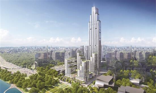 在绿色施工方面,为积极响应国家倡导的“资源节约型和环境友好型”社会建设,中建八局华南公司承建的招商银行总部大厦项目通过策划,通过采用全自动化洗车槽、铺设钢板路配合喷淋围挡减少扬尘,并创新将塔楼超高泵送系统置于地下室,在控制扬尘的同时大幅度降低了传统泵车泵送时的噪音,设置了环境监测系统,实时对工地扬尘、噪音进行监测,便于项目掌握工地环境状态,及时制定对策;同时还运用一体化微滤沉淀净水机、钢膜+铝膜、BIM辅助定尺下料、AI喷淋养护系统、电器定时开关等70余项措施实现节能降耗、绿色施工。