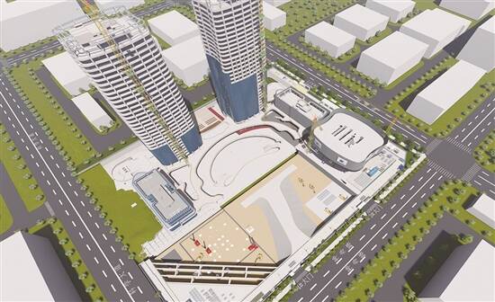 当前,项目三期A塔楼工程桩完成地下室封底。B塔楼5层结构已施工完成,钢柱安装至5层,爬架、铝模启动安装,为项目工序穿插呈现提供有利空间。项目二期正处于幕墙及公区精装施工阶段,外立面幕墙整体施工进度完成50%,公区精装整体完成30%,计划于2023年9月完成竣备目标。