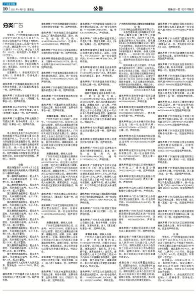 遗失声明 本人周洁文不慎遗失营业执照正副本。统一社会信用代码:92440101MA5AFATB9J;注册号:440103600263018;现登报声明作废