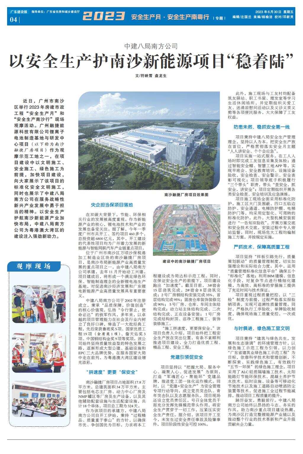 以安全生产护南沙新能源项目“稳着陆”