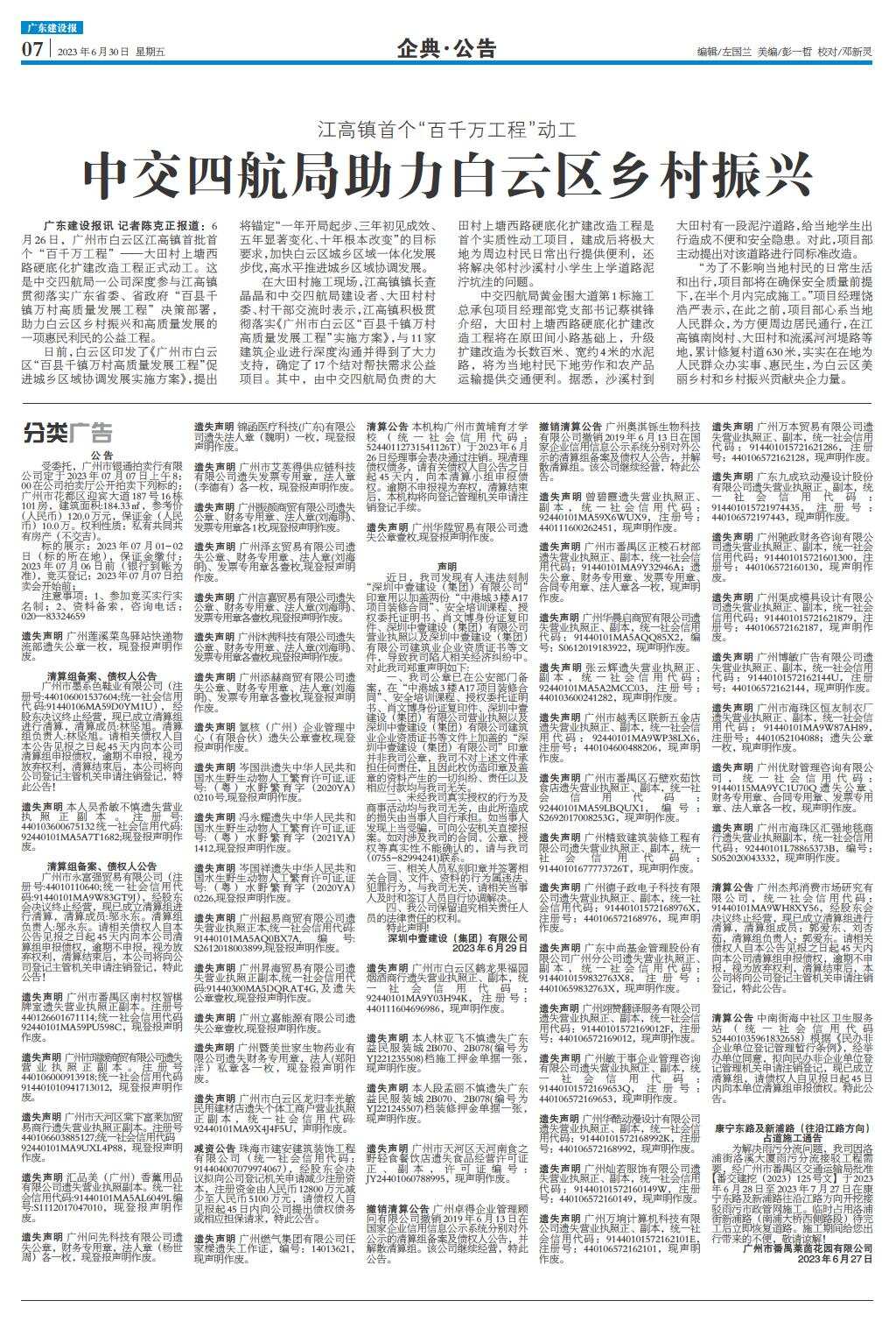中交四航局助力白云区乡村振兴