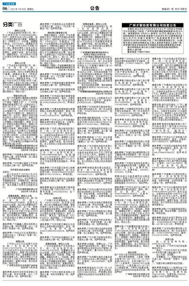 遗失声明 广州粤尚君营销策划管理有限公司遗失营业执照正、副本,统一社会信用代码:91440101304365375F,现声明作废。