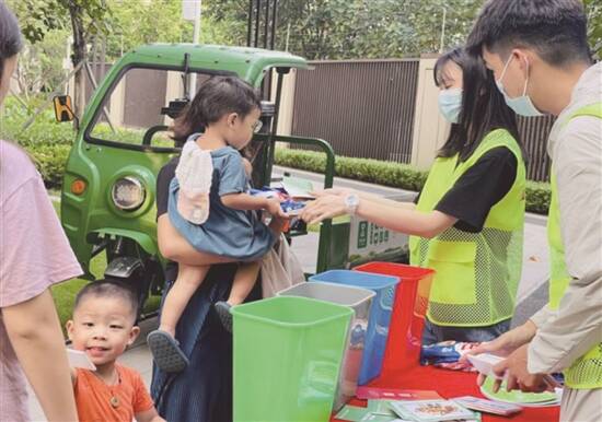 除了常规的桶边引导工作,针对小区内垃圾分类投放点的周边环境、设施状态、设备管养等工作,工作人员还开展了相关培训,指导物业及时做好保洁、维修、更换和保养,定期使用消毒液对生活垃圾分类收集容器内外环境进行消杀,把垃圾分类各项管养保障措施作为物业工作常态。